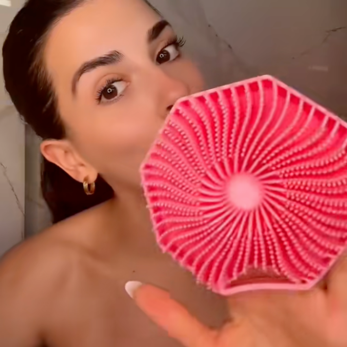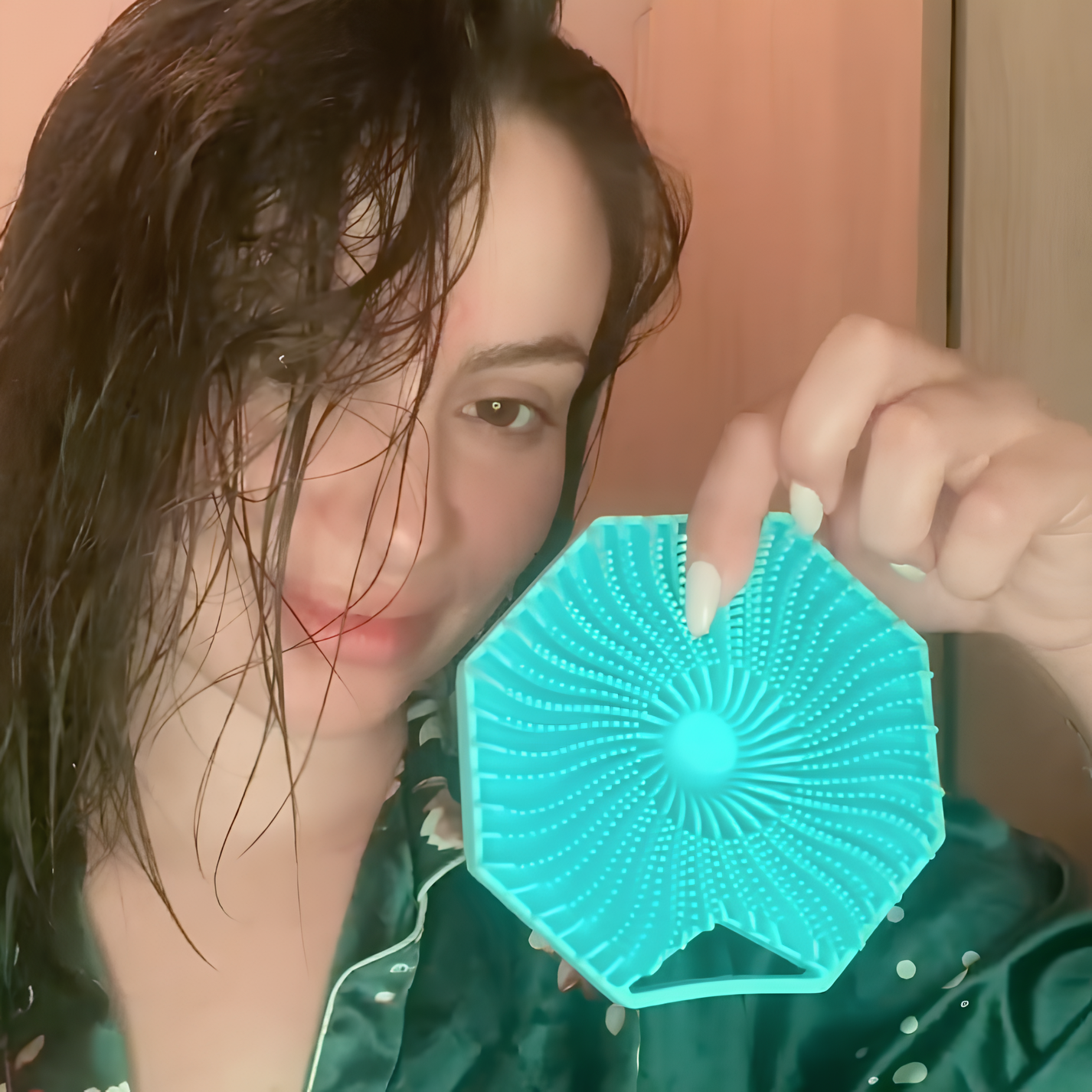 Ses picots exclusifs nettoient en profondeur sans agresser, et offrent un effet massage agréable qui transforme la douche en véritable soin.